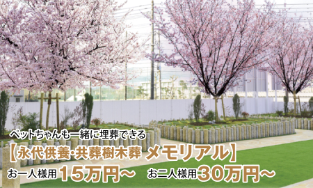 同霊苑では、永代供養樹木葬「メモリアル」や年間管理料不要の納骨墓「旅立ち」など、家族構成や希望に応じたさまざまな区画を用意。ペットと一緒に眠ることができる区画も整備されており、時代のニーズに応えている。総面積421・62㎡の敷地には一般区画365区画、樹木葬231区画を備え、駐車場や水場も完備。
