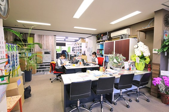 事務所には相談カウンターと、奥には広々とした打ち合わせの商談室もあります。