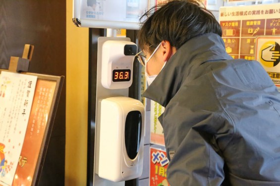 入り口ではしっかり検温とアルコール消毒。