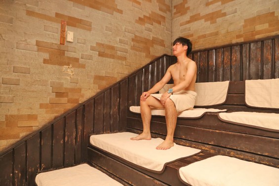 美福の高温サウナは80~90度と高温だが息苦しさがない。