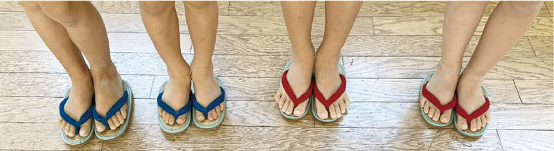 松永幼稚園の制服は、体操服の上に着るスタイルなので、基本的に園での着替えなし。夏は体操服で、冬は上にはおるだけで済んで、入園準備の負担も少ない。セーラー襟のえんじ色のラインがアクセント。ベレー帽と、夏用帽子がある。年中組、年長組は室内では草履を履いており、土踏まずの形成や浮き指の改善につながる取り組みをしている。