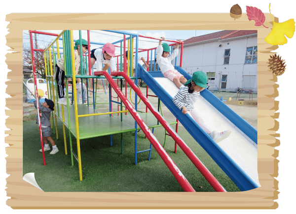 園児たちが大好きな一番人気の遊具です。安全で楽しく遊びながら、健やかな身体を育ててくれて、お友達との思い出もいっぱいできるでしょう。入園を考える年代のお子様たちも、園庭開放などのイベント時に利用できることがあります。