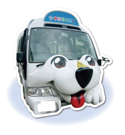 すばる幼稚園と言えば、わんわんバス!とイメージされるほど大人気。駅家はラッキーとルーシー、府中はハッピーの愛称で親しまれている3台で送迎している。バスの側面に描かれたリボンの色が違い、コースを簡単に区別できる。